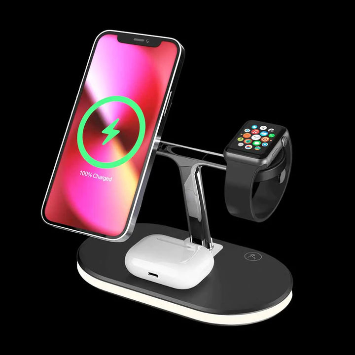 The inductive charging technology is what powers a 3-in-1 wireless charger. The charger avoids the need for direct contact by generating a magnetic field that transmits energy to your devices via compatible receivers. You can charge your devices without plugging and unplugging cables by simply setting them on the charging pad or stand.