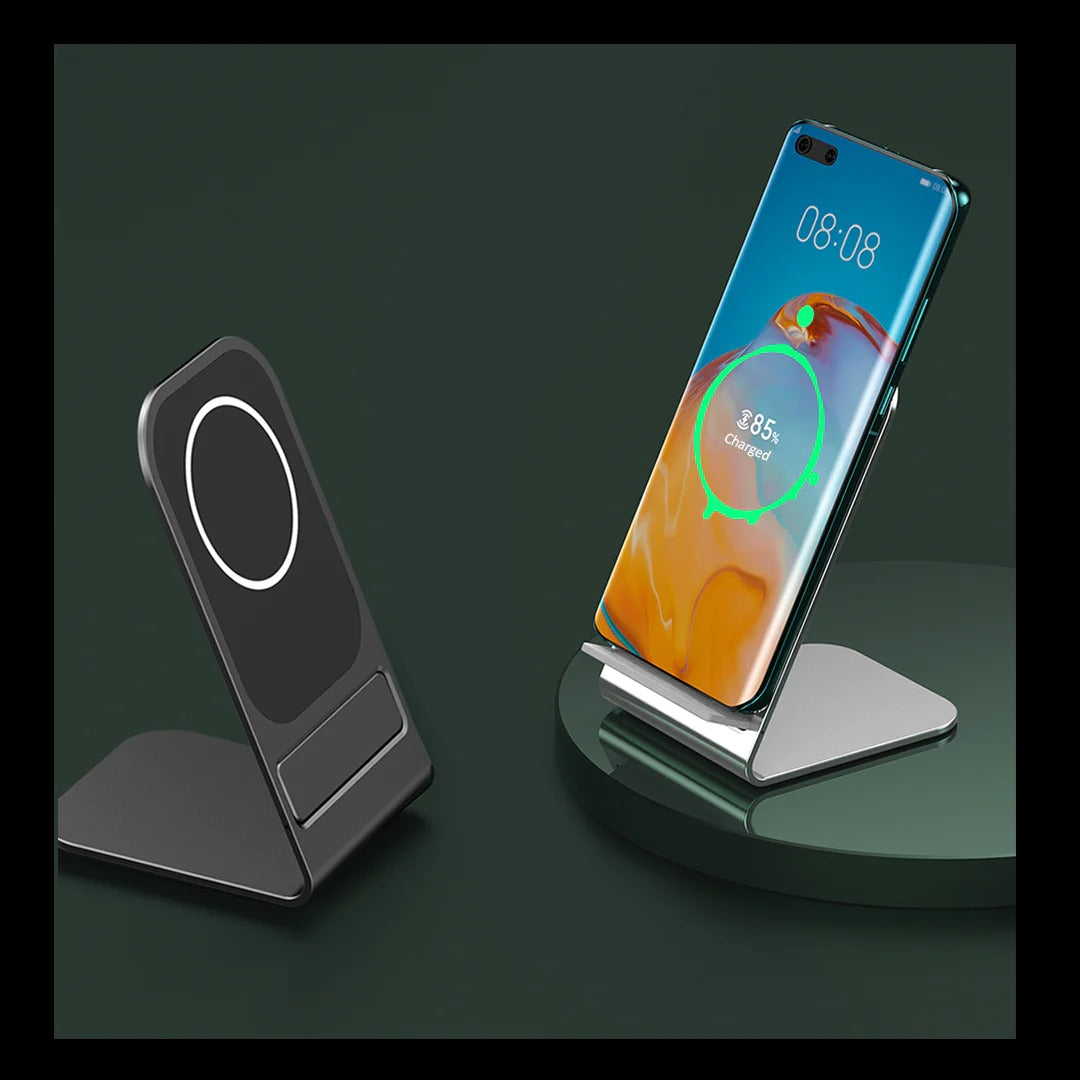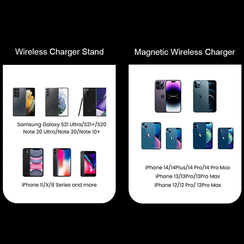 Unistand Magnetic Wireless Charging Station offers a maximum power output of up to 15W for all Qi-enabled phones and up to 15W for iPhone 14/13/12 series. The accurate charging speed and time will depend on your device’s maximum supported input and battery size. For efficient results, we recommend using a power adapter of at least 18W and above.