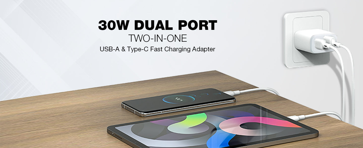 A 30W Dual USB/PD Charger is a compact wall adapter with two output ports (usually one USB‑C PD and one USB‑A/USB‑C). It allows you to charge two devices at once, sharing up to 30W of total power.