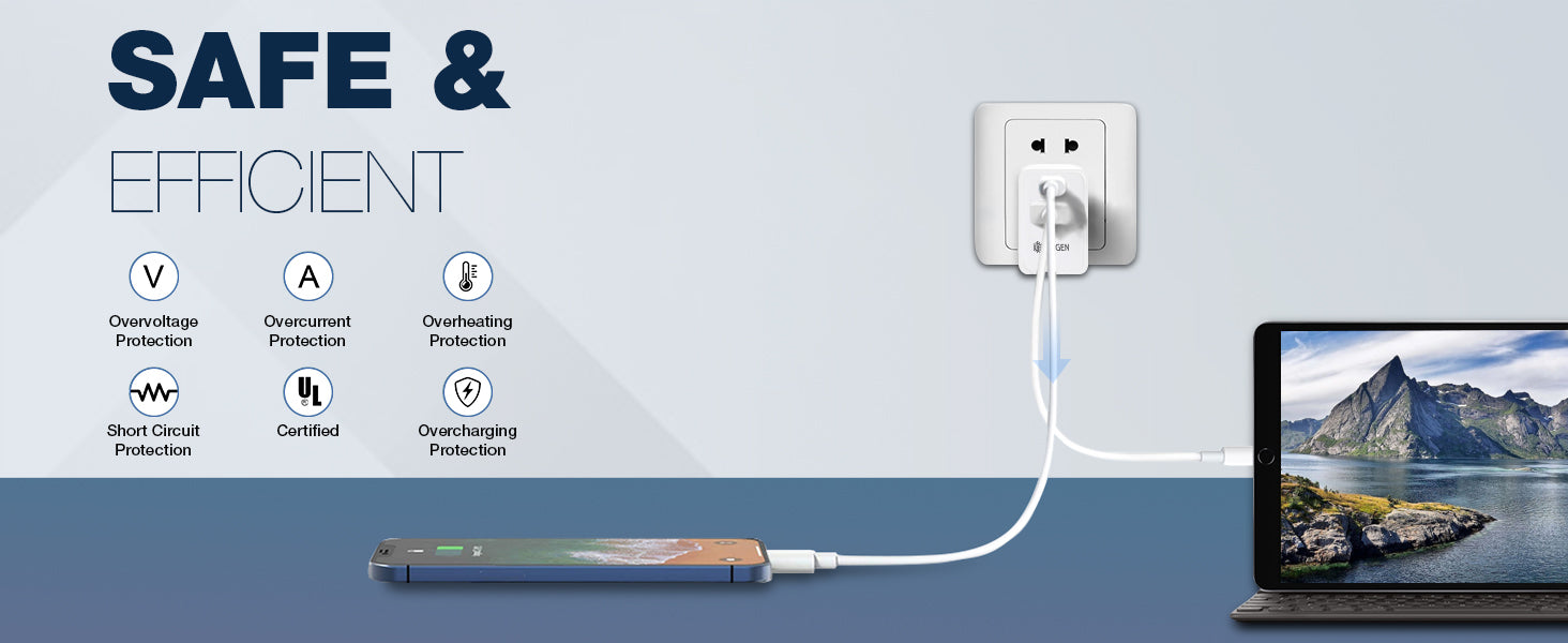 Yes — quality chargers include built‑in protections such as over‑current, over‑voltage, overheat, and short‑circuit protection, keeping both the charger and your devices safe during charging.