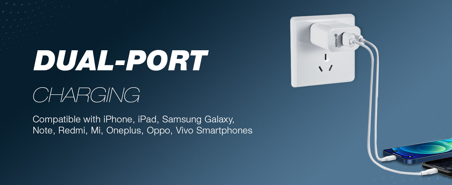 Yes — you can plug in two devices simultaneously. The charger intelligently distributes the 30W power between both devices, so each draws the optimal current without overloading.