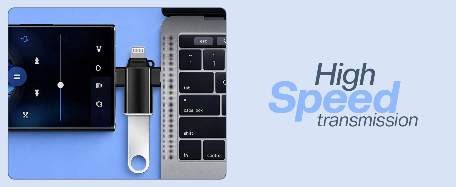 The adapter supports efficient file sharing with USB 2.0/3.0 interfaces, allowing fast data transfer when used with compatible devices.