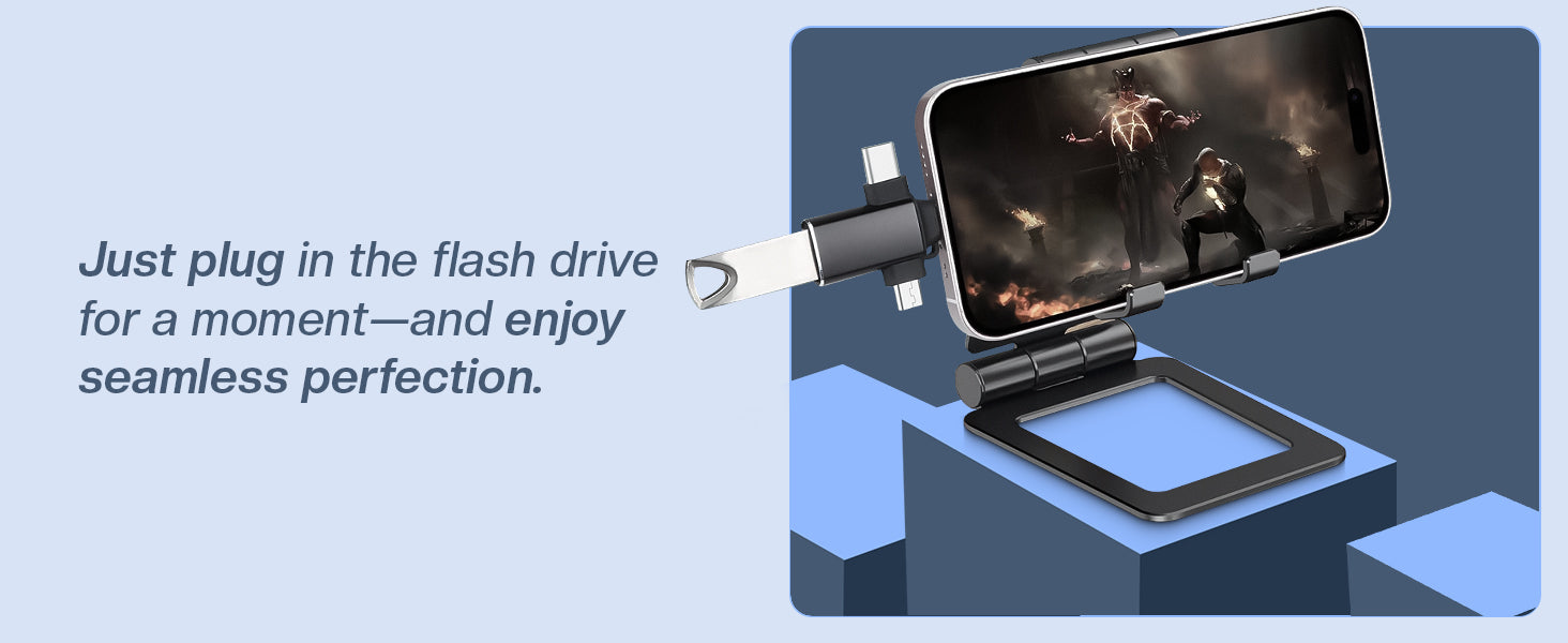 This adapter supports OTG‑enabled smartphones, tablets, laptops, and cameras across Android and iOS, allowing you to connect USB peripherals like flash drives and keyboards.