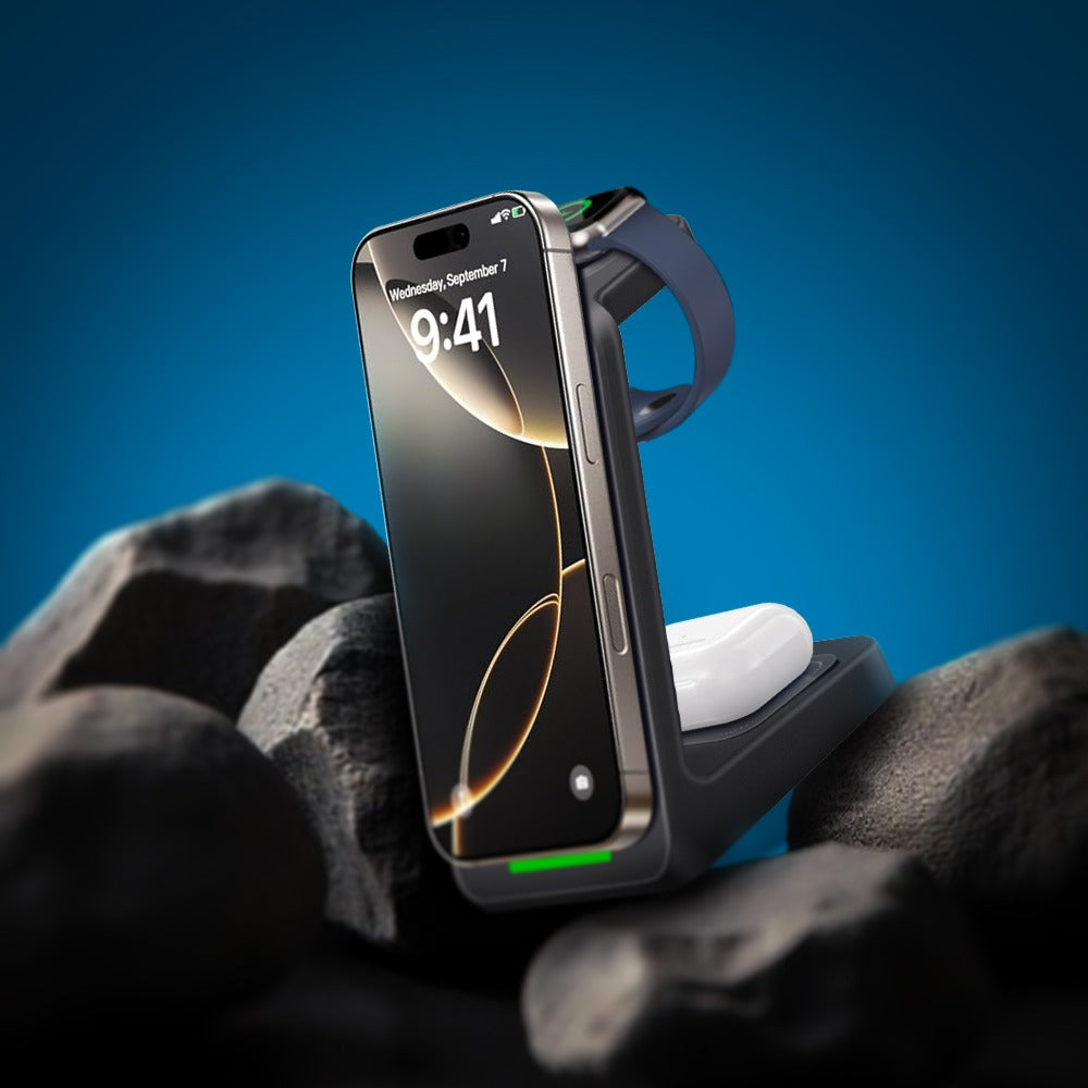 UNIGEN® Magtec 330 is a powerful 3-in-1 wireless charging station designed for Apple users. Featuring strong magnetic alignment, USB-C fast charging, and smart LED indicators, it efficiently powers your iPhone, AirPods, and Apple Watch simultaneously. With 73% charging efficiency, a compact, travel-friendly design, and universal Qi compatibility, it’s the perfect solution for a clutter-free and reliable charging experience.