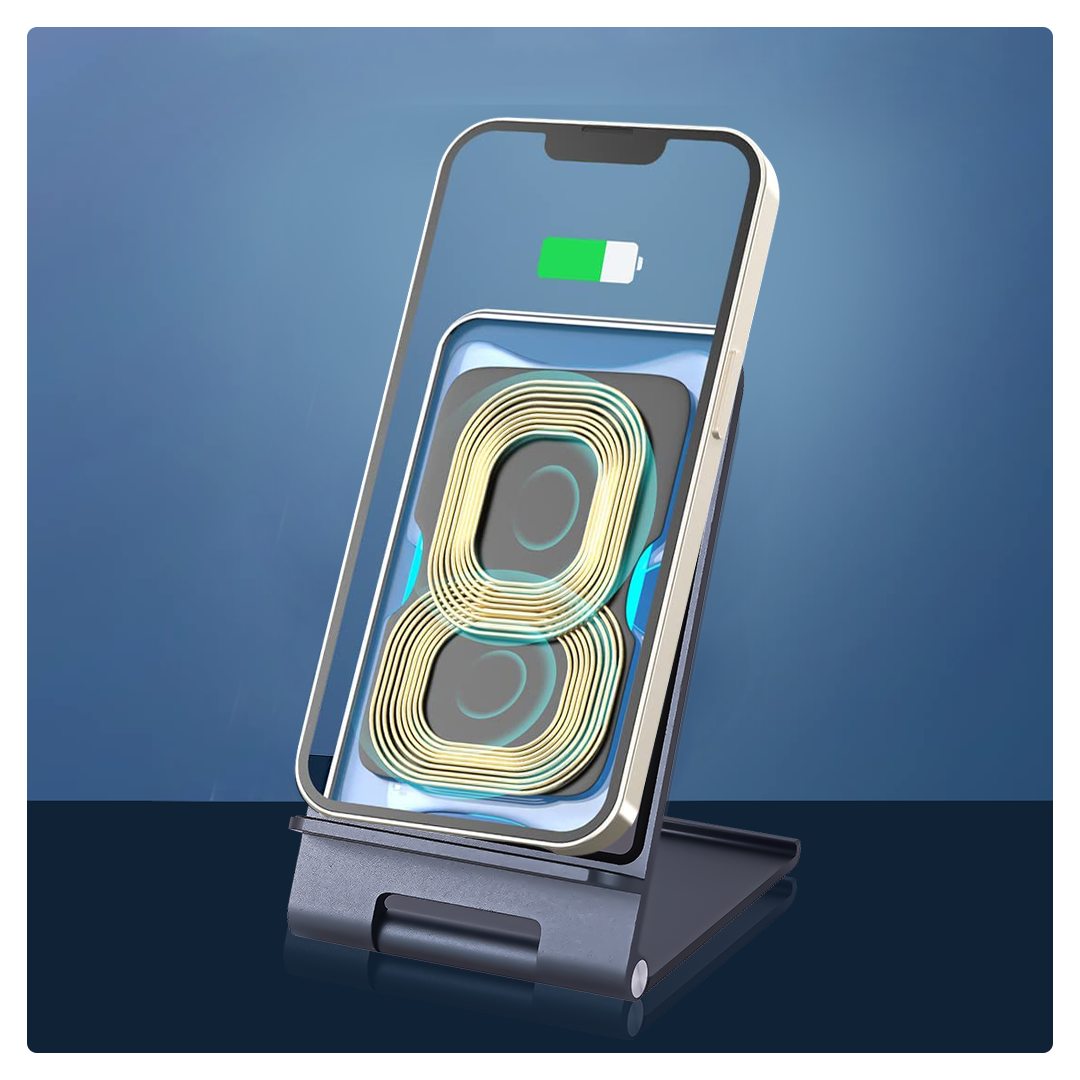 UNIGEN UNISTAND FLEX is a wireless charger stand made of aluminum alloy that can fold for easy portability. It is compatible with all devices that support wireless charging and can fast charging up to 15W. The stand can be used on a desk or any flat surface, making it a convenient charging stand for your device.