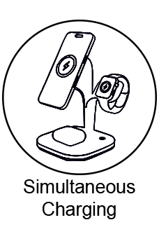 Magtec 500 4 in 1 magnetic wireless charger lets you snap your Apple devices magnetically into perfect alignment with only one hand. Just place your iPhone 15/14/13/12 series on the charging stand and the advanced magnetic technology could adjust the charging position automatically and provide efficient charging.