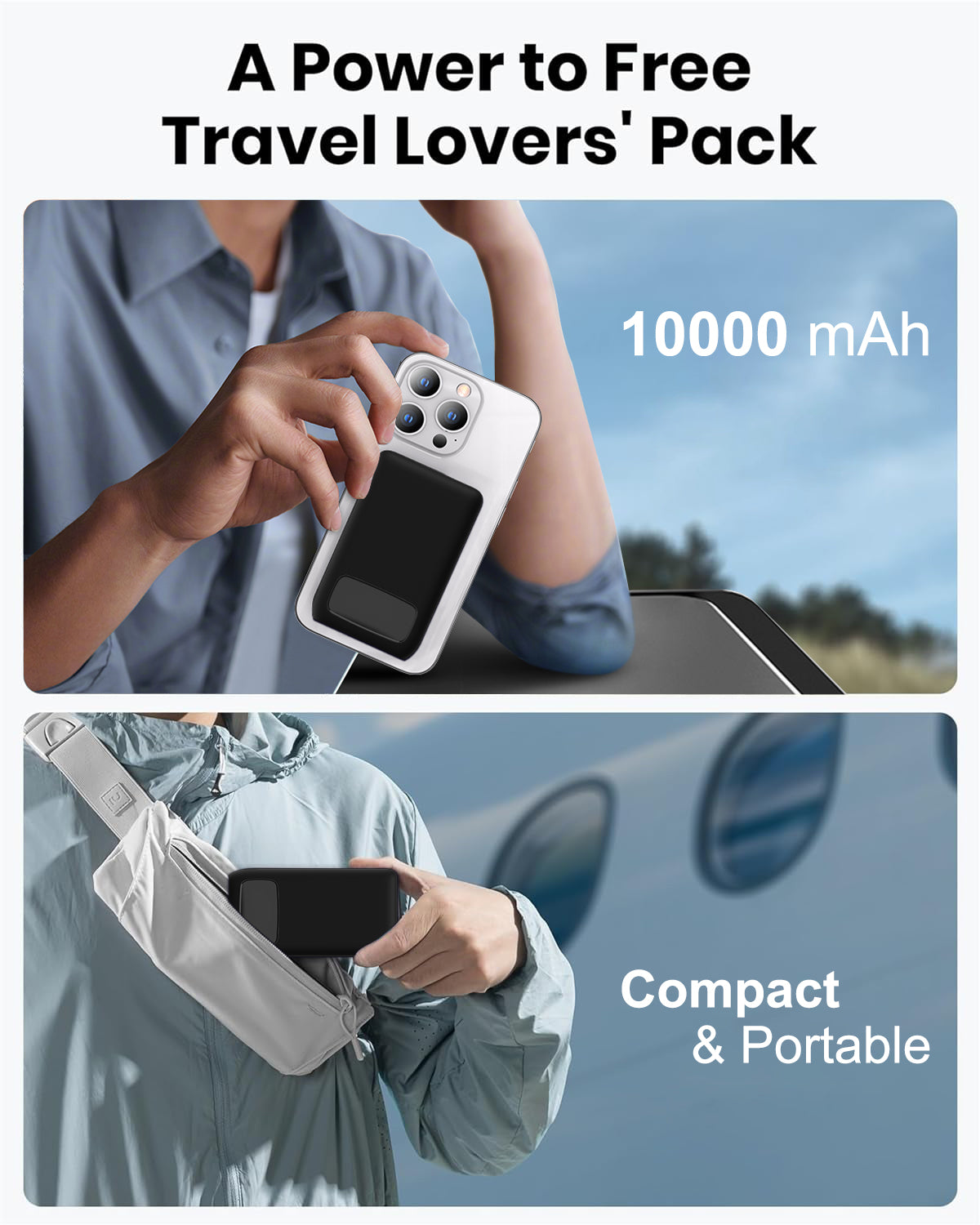 10000mAH large capacity of the magnetic power bank and high density battery design can provide all-day power & LED keeps you updated about battery status.