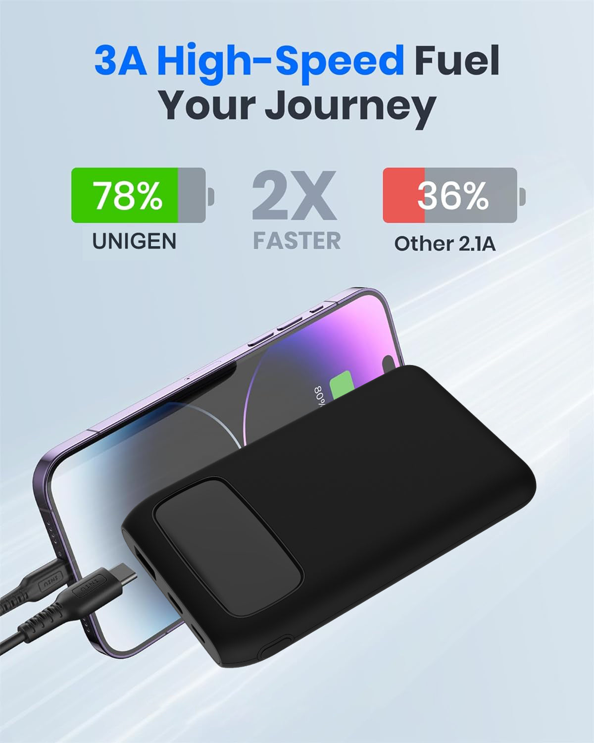UNIGEN UNIPOWER 300 Mag-safe Power Bank is a versatile mobile charging solution with a capacity of 10000mAh. It supports fast charging capabilities, offering 15W wireless and 22W wired charging options. Designed in India, it features USB Type C connectivity and is specifically compatible with iPhone models from 16 to 12 Pro Max. The sleek black design ensures both style and functionality for on-the-go power needs.