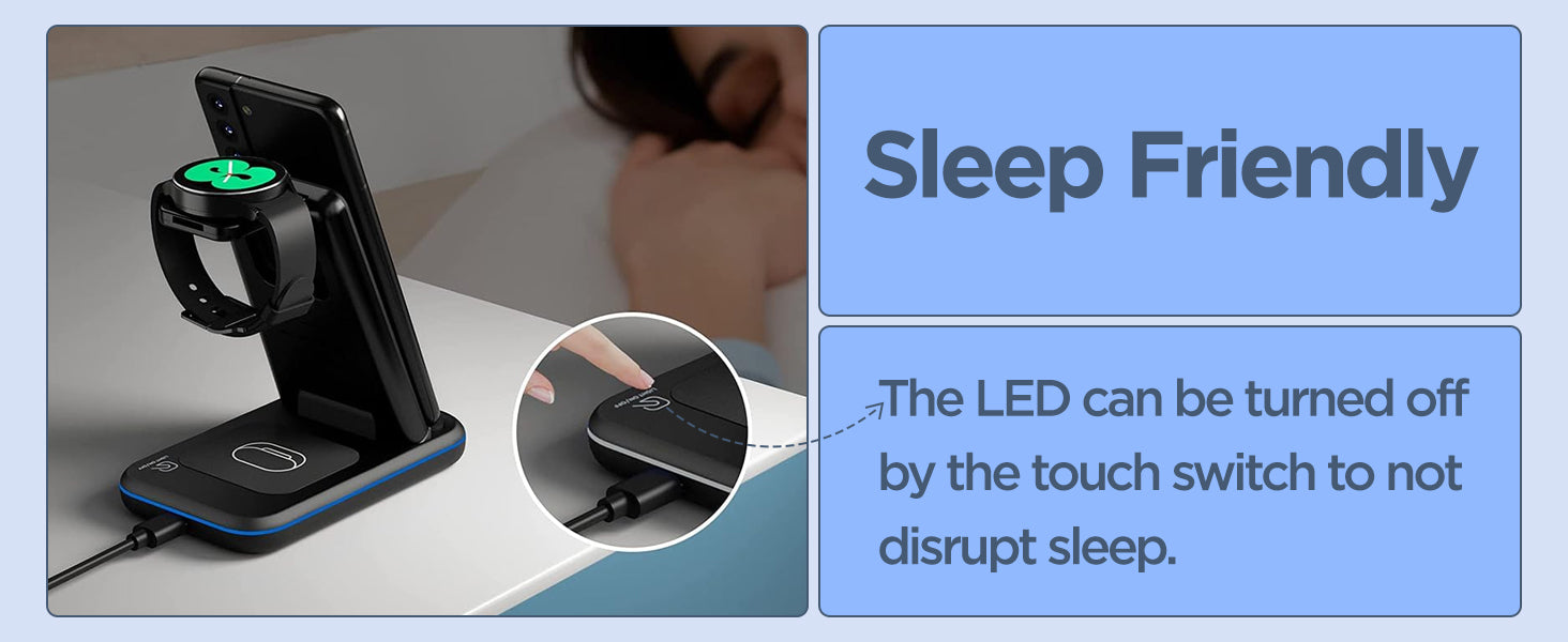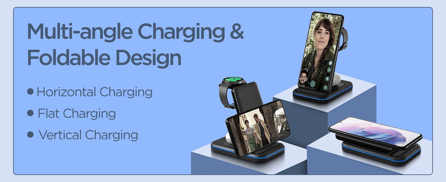 It’s a 3‑in‑1 wireless charging station that lets you charge a smartphone, smartwatch, and earbuds simultaneously using a single dock. It streamlines charging and helps eliminate cable clutter on your desk or bedside.