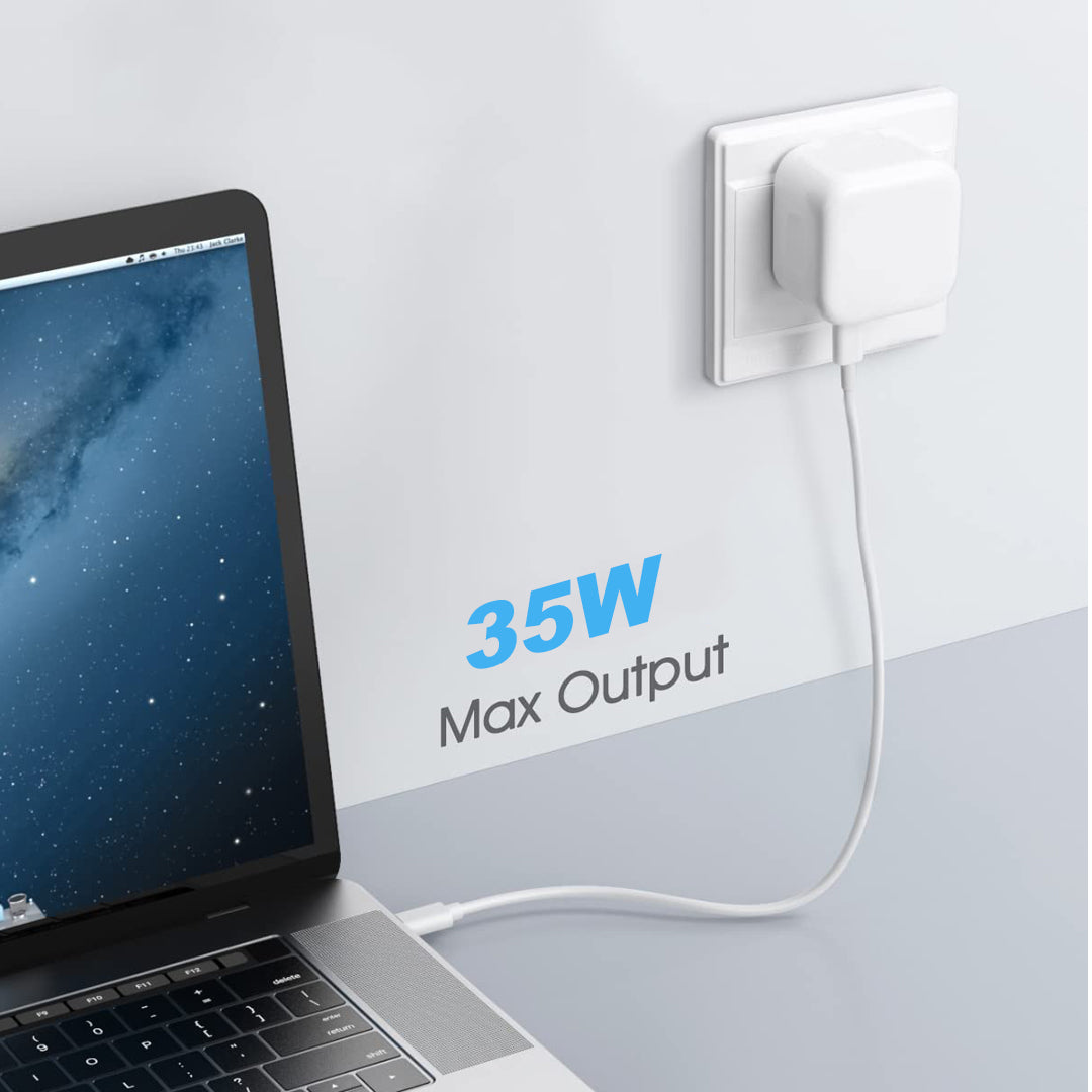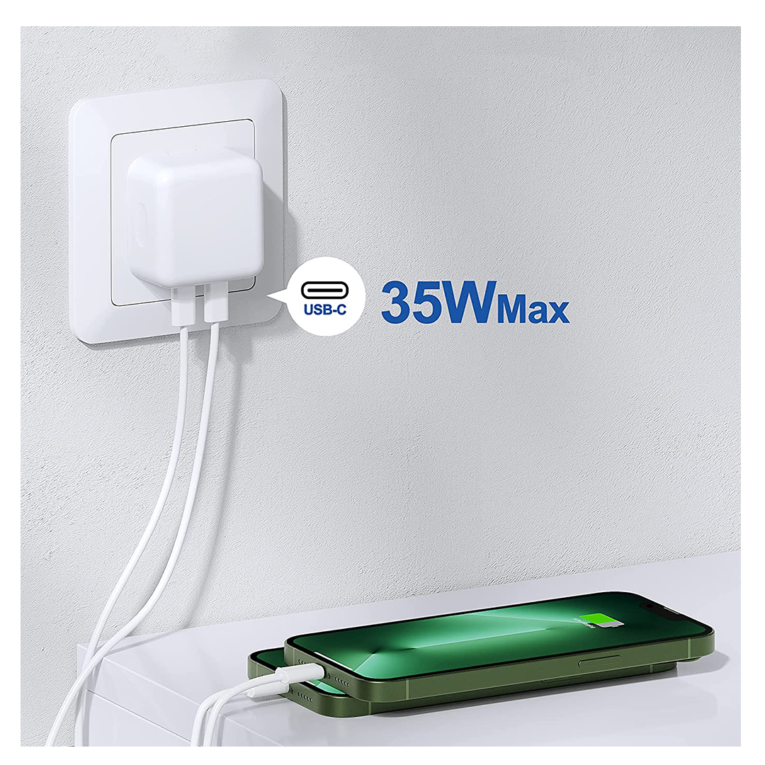 The UNIGEN 35W Dual USB-C Port Compact Power Adapter is a fast wall charger block designed for a range of Apple devices, including iPhone 14, 13, 12, 11, 14 Pro Max Plus Mini, iPad, Air Pods, and Mac Book Air. With PD 3.0 USB Type-C ports, this charger can quickly charge your devices, allowing you to stay connected and powered up wherever you go. Its small size and round shape make it easy to carry in your bag or pocket, and the ABS material used in its construction ensures durability and longevity.
