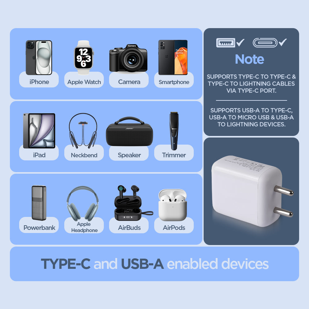 It is compatible with all smartphones, tablets, and smartwatches that support USB-C or USB-A charging.