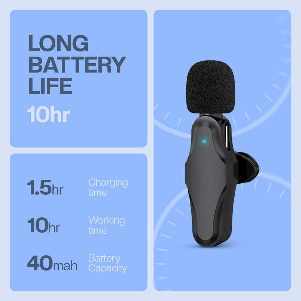 UNIGEN UniMic 100 Wireless Lavalier Microphone is designed for versatility and convenience, compatible with Android devices, iPhones, and tablets. It features noise reduction technology, making it ideal for YouTubers, podcasters, video recording, Facebook streaming, and live broadcasts. The included charging case ensures extended battery life, providing worry-free use during extended sessions.