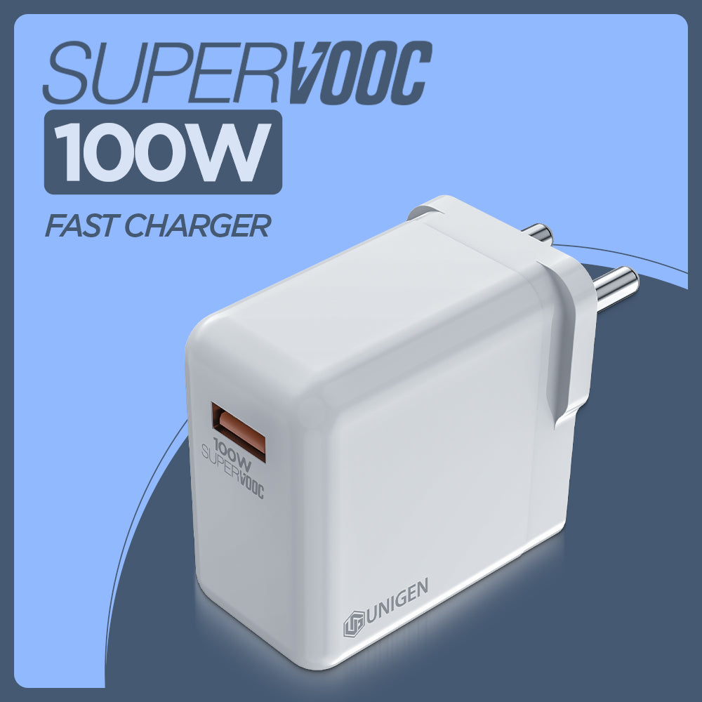 Experience next-level charging with the UNIGEN 100W SuperVOOC Fast Charger, designed to deliver ultra-fast, reliable power to your OnePlus, Realme, Oppo, Redmi, Xiaomi, Poco, iQOO & More Supports Dart, Dash, Warp, Vooc, SuperVooc and other Type-C devices. Compatible with Samsung, OnePlus, and a wide range of Type-C devices, this charger ensures your gadgets are always ready when you are.