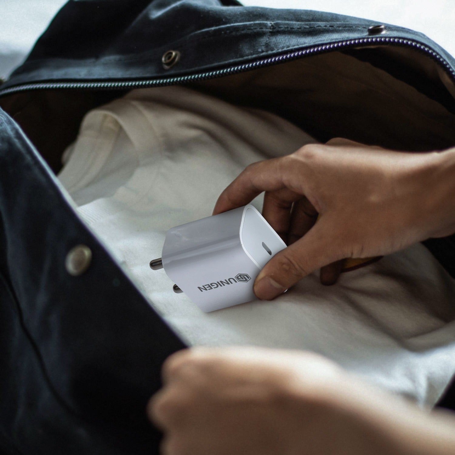 A compact and BIS-certified fast charger featuring dual USB Type-C ports, allowing you to charge two devices simultaneously. Delivers up to 20W fast charging for a single device, with intelligent chip protection for safe, efficient power delivery. Compatible with iPhone 16/15/14 series, iPads, Android phones, and all USB-C devices. Its sleek, travel-friendly design makes it ideal for home, office, or on-the-go use.