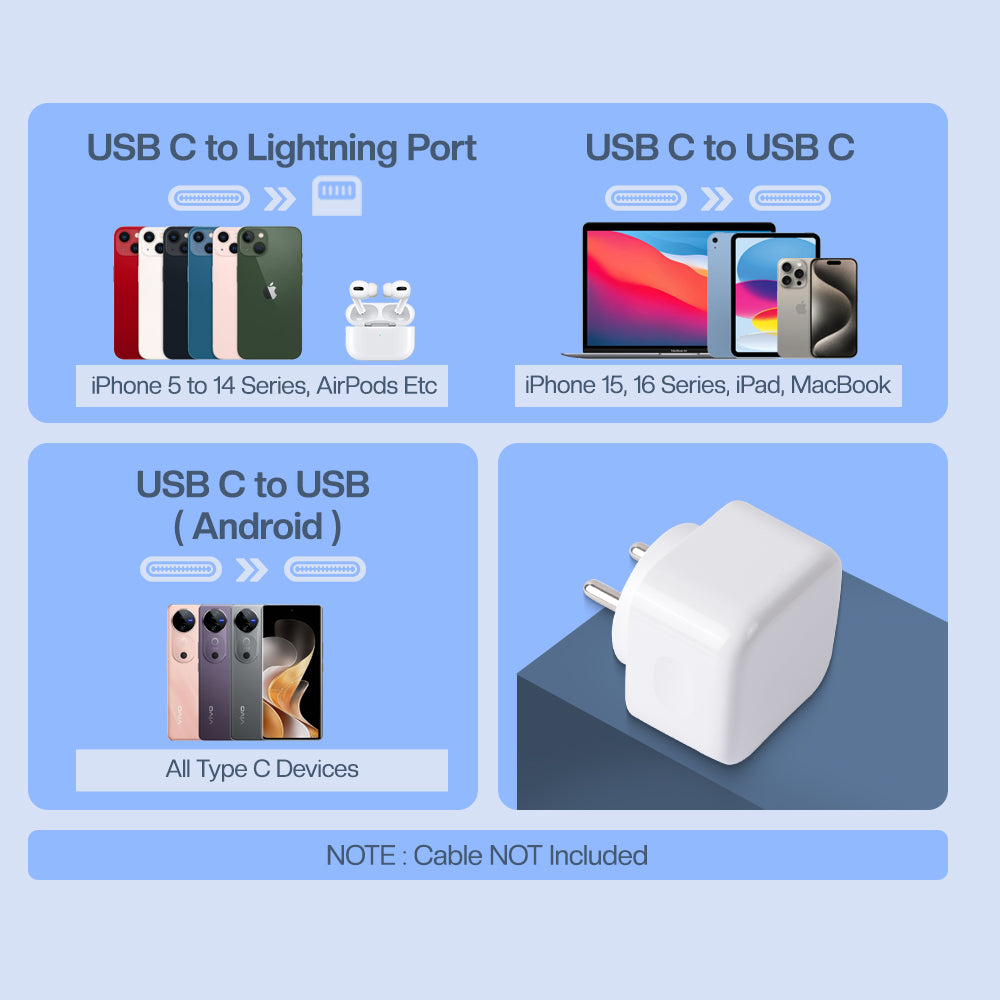 The PD Charger is built with strong ABS plastic enclosure that can withstand high impact drops, scratches, scrapes, and bumps. Ultra compact and lightweight design ensures maximum portability wherever you go.