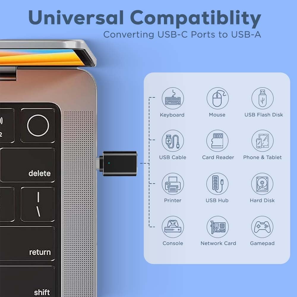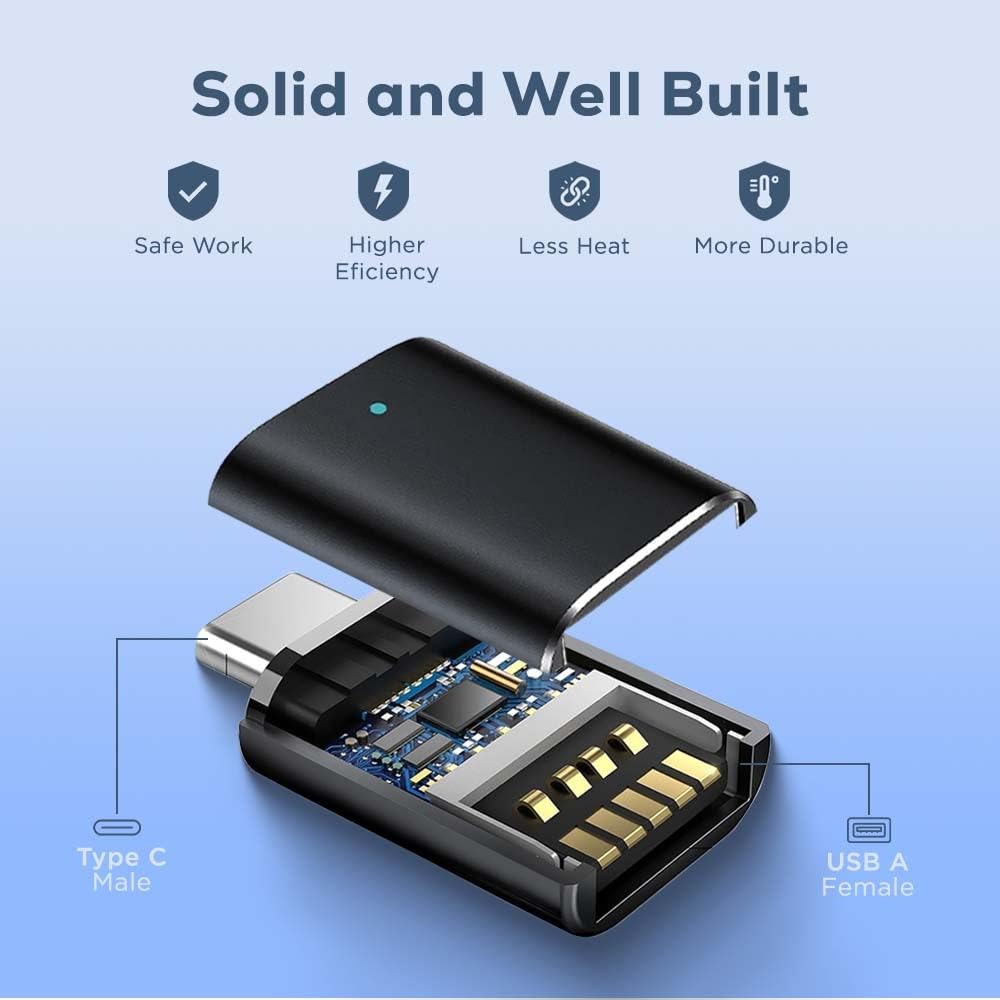USB Type A to Type C Converter OTG, USB 3.0, High-Speed Data Transfer, Plug and Play, for Laptops | Smartphones | Type-C Compatible Devices | Black