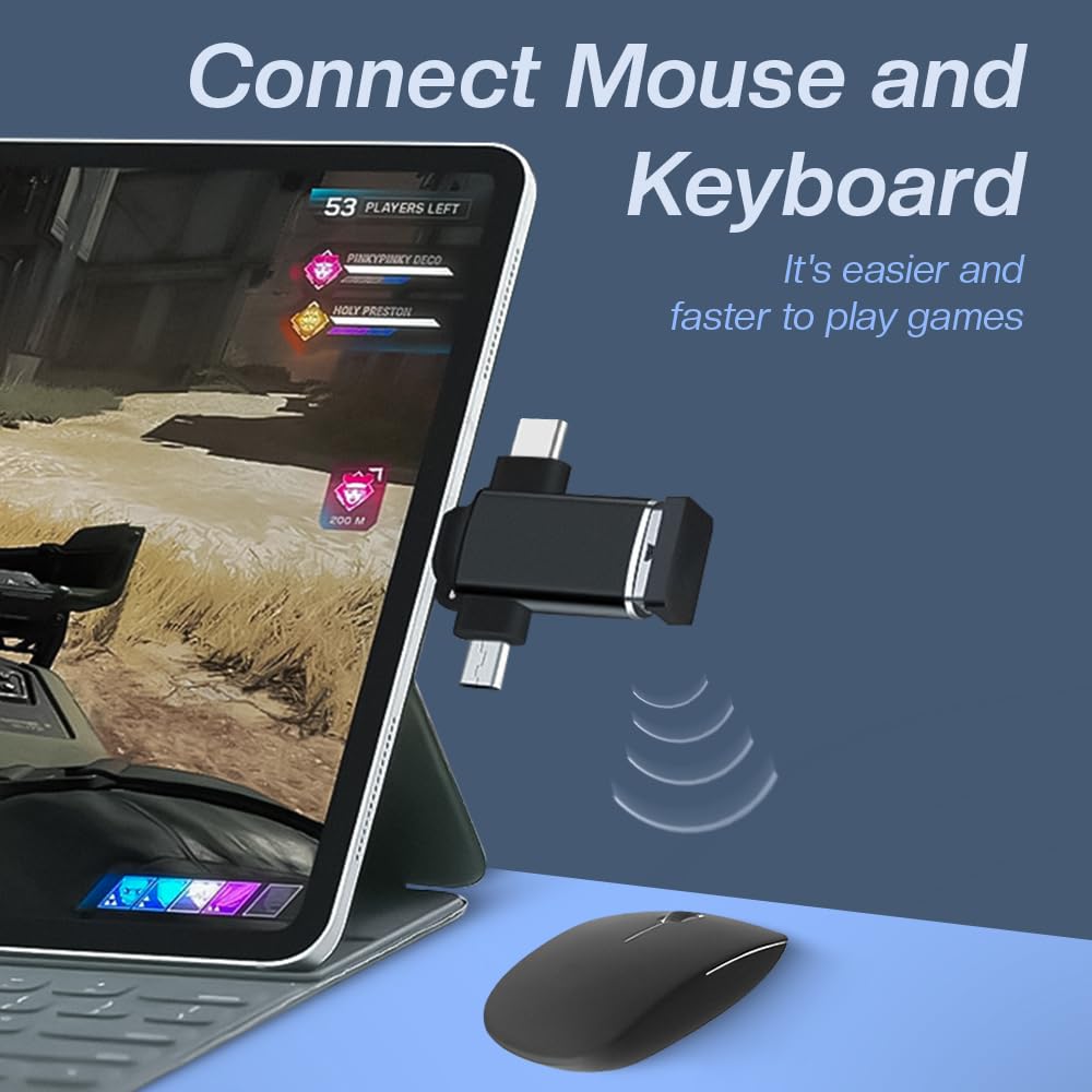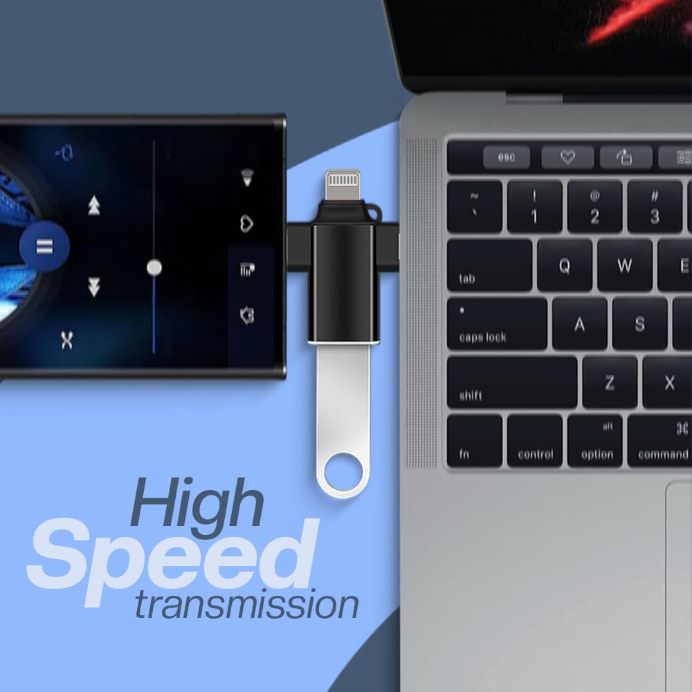 4in1 USB OTG Adapter USB-A Female to Type C Micro Lightning Male Accessories Mouse Keyboard Flash Drive Android Compatible for Apple iPhone 16 15 14 Pro Max 8 iPad LG