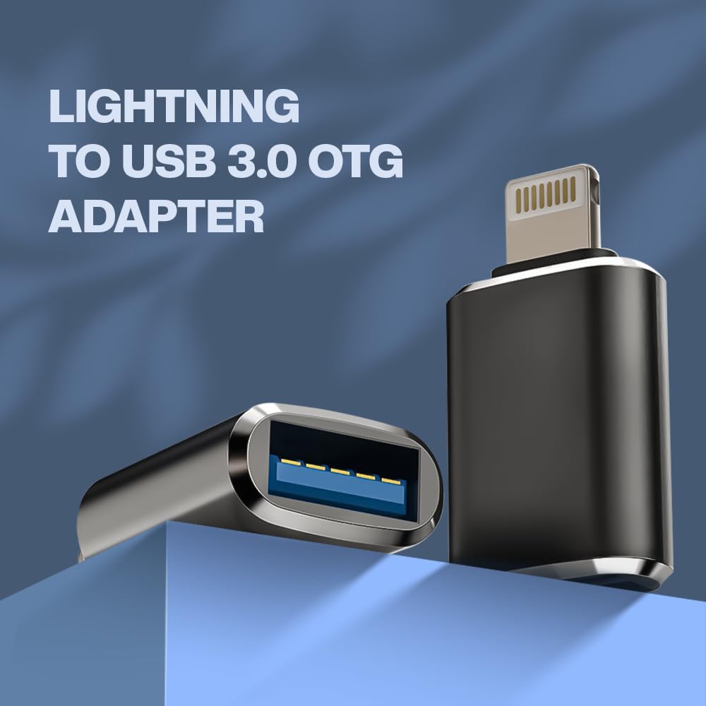 Lightning Male to USB 3.0 A Female OTG Adapter | High-Speed Data Transfer | Compatible with iPhone 14, 13, iPad & More | Plug & Play iOS USB Connector โ Black