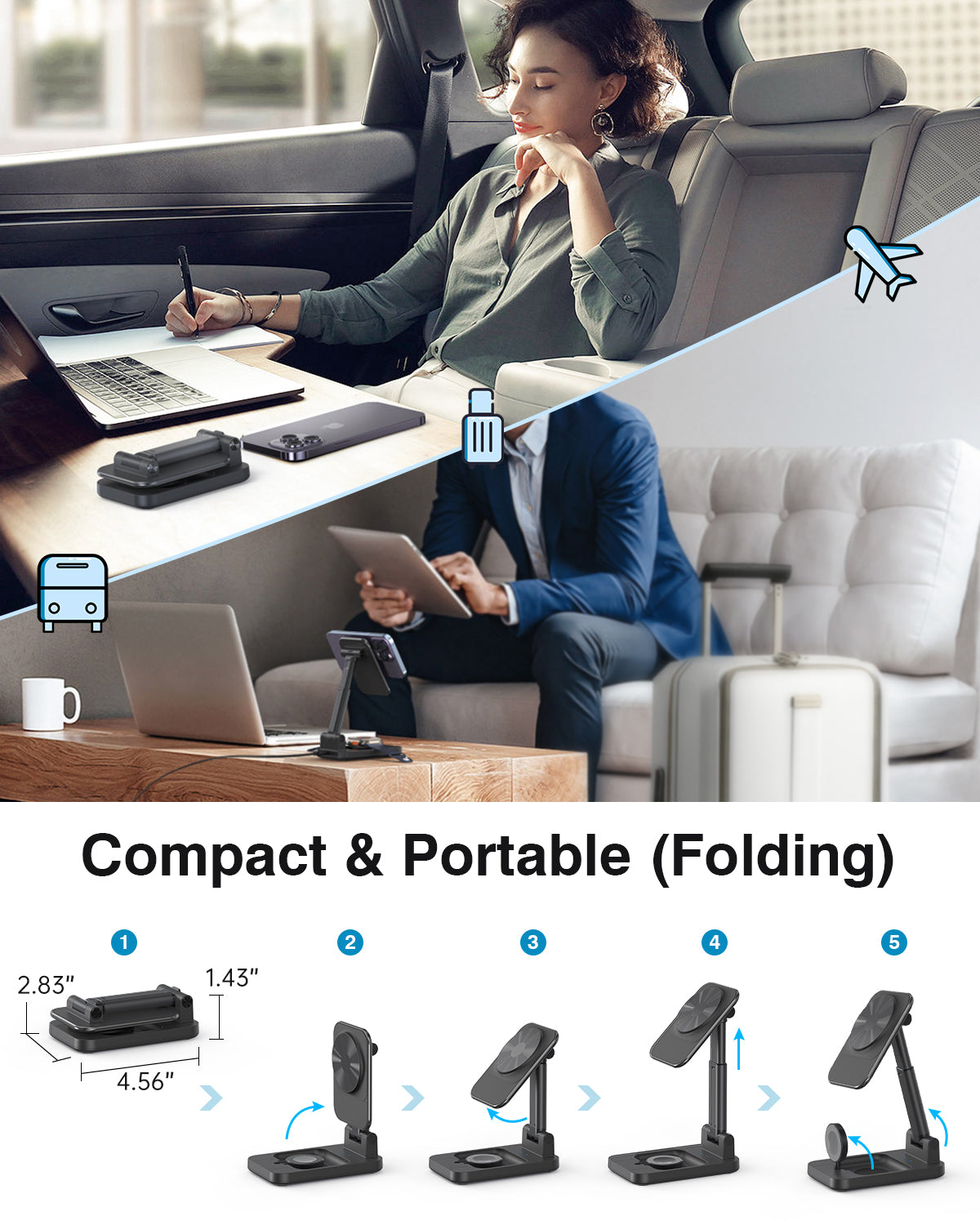 Many wireless charging stations are designed for desktop use, often as single, non-collapsible units that are difficult to pack. The Magtec 310, however, folds entirely, forming a flat shape approximately 11cm in length and 7cm in width. As a result, the Rover is an ideal travel companion, enabling you to charge all your essential devices simultaneously wherever you may be.