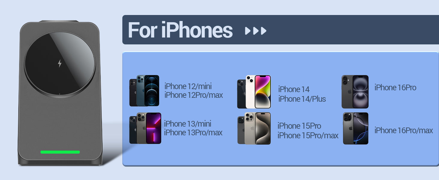 The strong magnetic alignment lets compatible iPhones snap into place for wireless charging, which improves connection and charging stability compared with regular Qi pads.