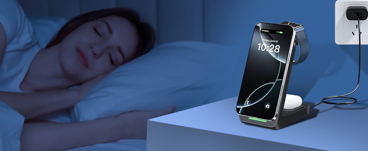 Itโs designed to charge your iPhone (MagSafeโcompatible models), AirPods, and Apple Watch all at once โ no need for separate chargers or cables. It also works with other Qiโenabled earbuds and phones on the 5โฏW pad.